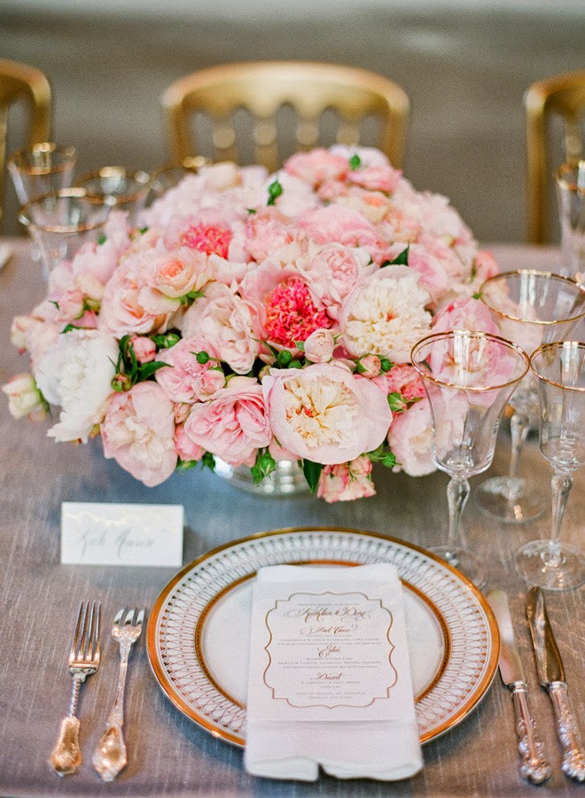 To guide you through your journey of finding the perfect floral arrangements for your wedding day, every month we put together a hand-picked installment of the best wedding centerpieces from around the web. This particular round-up is all about romance! Picture gorgeous garden roses, breath-taking peonies, stunning orchids and pretty hydrangeas in soft shades of pink, ivory and purple. We also through some lavish floral creations to deliver our sophisticated touch. We hope that in this round-up you find those centerpieces that will complement your wedding reception to perfection, but if you don't, be sure to visit our wedding centerpiece gallery (in the top menu)... it's loaded with the prettiest wedding flowers out there. ABOVE IMAGE CREDITS {Event Design: David Pressman Events // via One Wed} ~ BELOW IMAGE CREDITS {Photography + via: Pam Scott // Event Design: Emily Smiley}